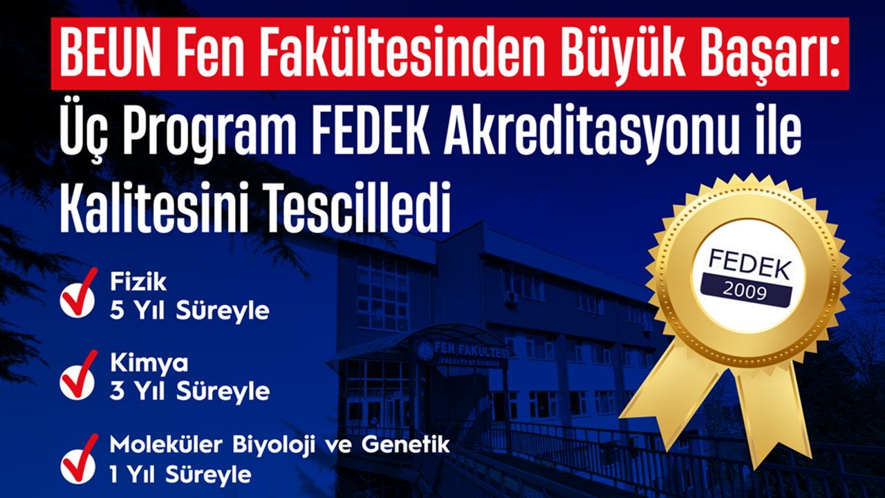 Zonguldak Bülent Ecevit Üniversitesi (BEUN), eğitimde kalite odaklı yaklaşımını ulusal ve uluslararası düzeyde tescillemeye devam ediyor. BEUN Fen Fakültesi; bünyesinde yer alan Fizik, Kimya ile Moleküler Biyoloji ve Genetik lisans programları, “Fen, Edebiyat, Fen-Edebiyat, Dil ve Tarih-Coğrafya Fakülteleri Öğretim Programları Değerlendirme ve Akreditasyon Derneği” (FEDEK) tarafından akredite edilerek önemli bir başarıya imza attı.
