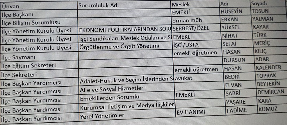CHP Alaplı İlçe Yönetimi gerçekleştirilen genel kurulun ardından görev dağılımını yaptı. Yapılan yönetim kurulu toplantısı sonrası yönetim kurulunun görev dağılımı şu şekilde oluştu;