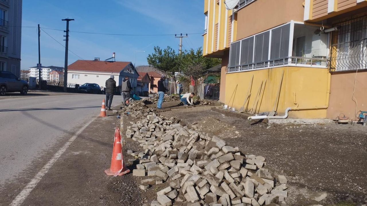 Gökçebey Belediyesi Fen İşleri Müdürlüğü ekipleri, altyapı çalışmaları tamamlanan Yeni Mahalle’de tretuvar parke örümü çalışmalarına başladı.