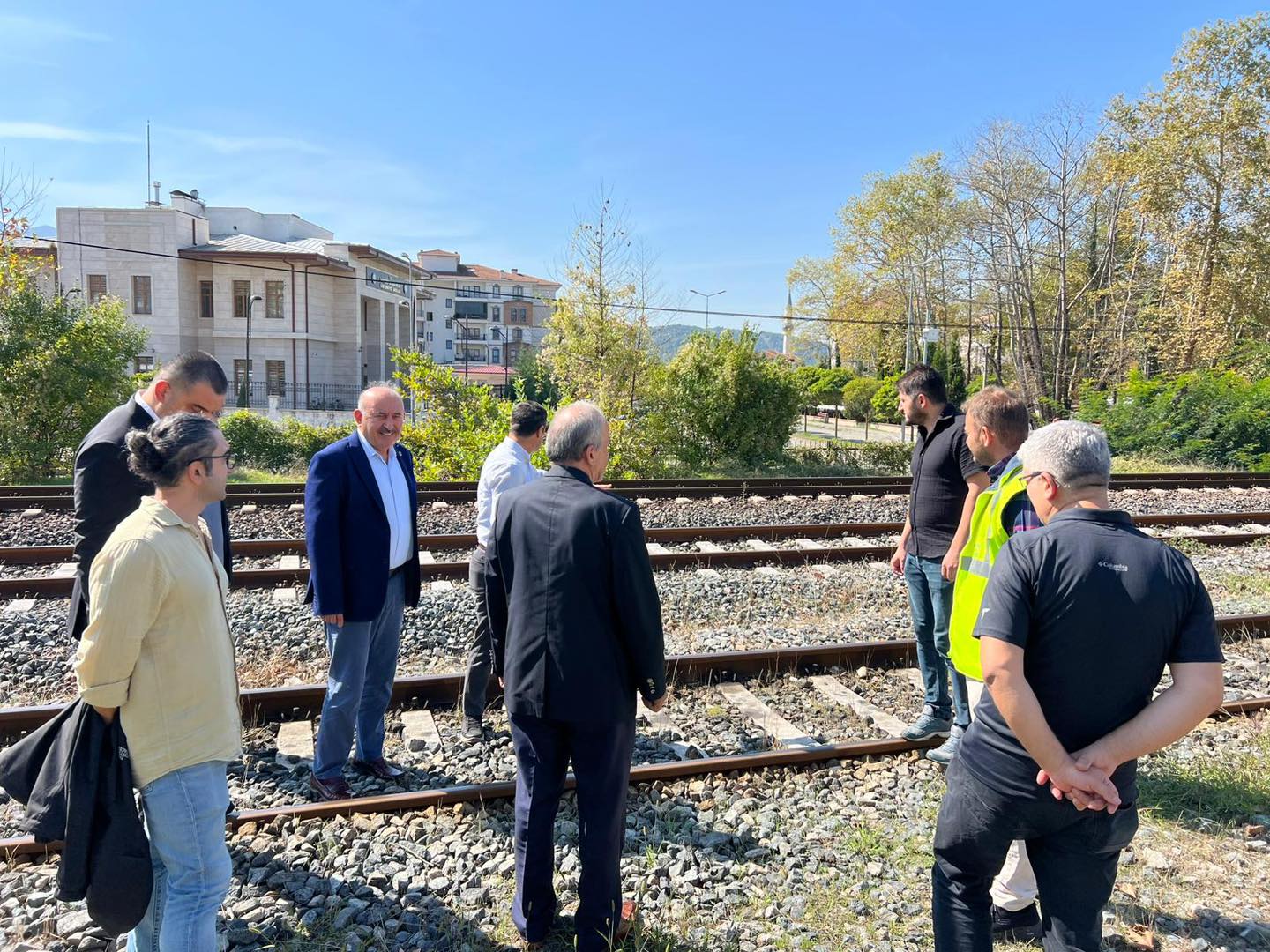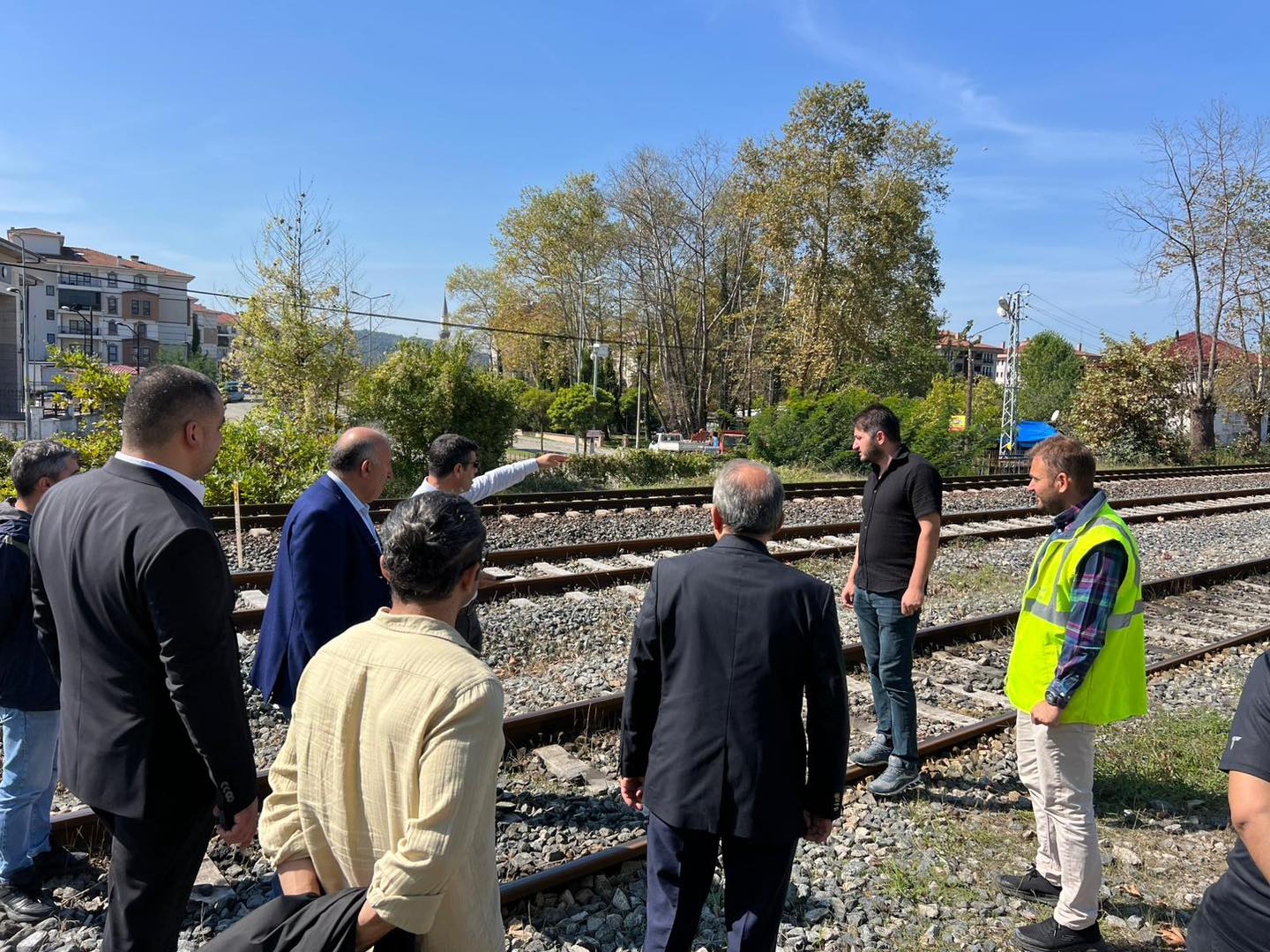 TCDD yetkilileri ile Belediye Başkanı Vedat Öztürk, yapım aşamasına geçilmeden önce proje alanında incelemelerde bulundu ve çalışma planlaması için keşif yaptı.