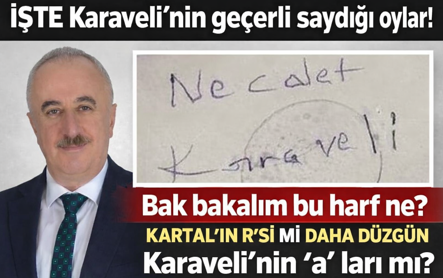 Kamuoyunda en çok konuşulan konu ise harf hatasının kriteri oldu. Kendisinin aday olduğu seçimde oy tasnifini de kendisi yapan Karaveli'nin rakip adayın oylarını adeta MEB Müfettişi gibi incelediği, ancak kendi geçersiz oyundaki 'J' harfini kimseye göstermeden geçerli saymaya kalktığı kamera görüntülerine de yansımış, Kariyer Medya bu görüntüleri kamuoyuna sunmuştu.