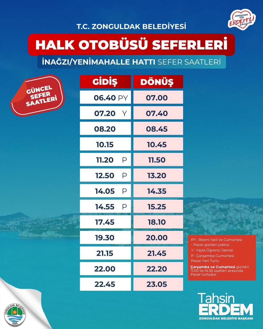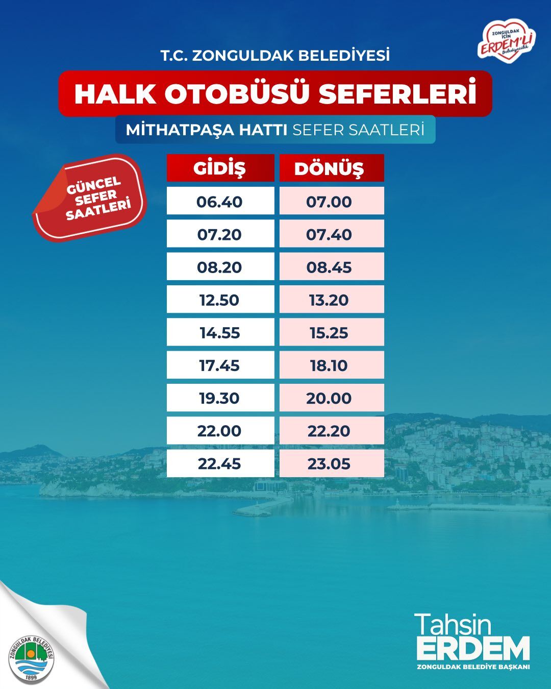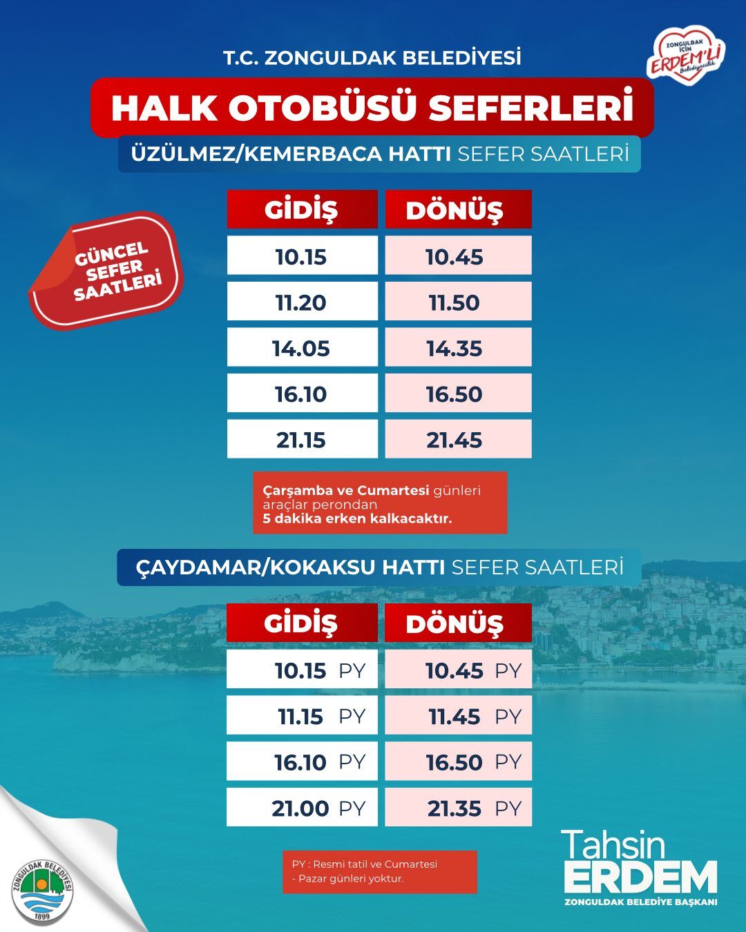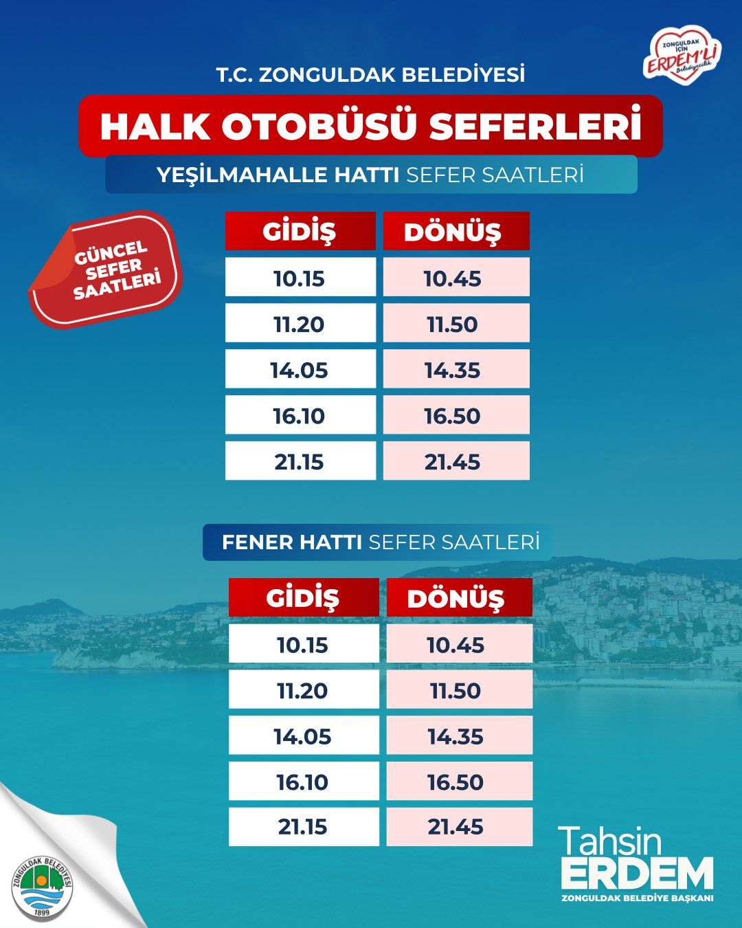 Zonguldak Belediyesi ayrıca, güncellenen sefer saatlerinin 17 Mart 2026 Salı günü itibarıyla uygulanmaya başlandığını duyurdu.