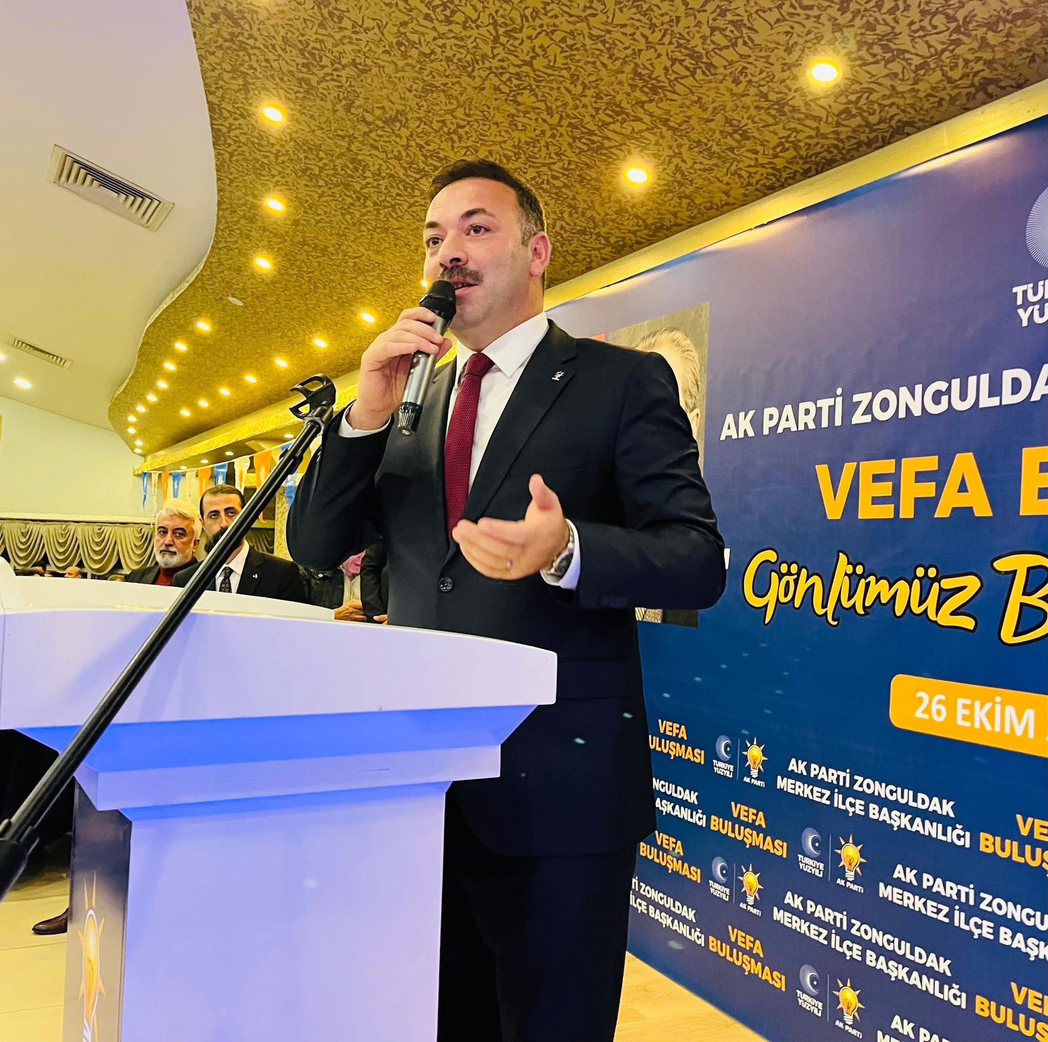 AK Parti Zonguldak Merkez İlçe Başkanlığı tarafından düzenlenen; göreve gelişin 1. yılı kutlama programı ve ‘Vefa Buluşması’, Genel Başkan Yardımcısı ve Teşkilat Başkanı Ahmet Büyükgümüş’ün katılımıyla Elizya Düğün Salonu’nda gerçekleşti. Teşkilat mensuplarının yoğun ilgi gösterdiği buluşmada, geçmişten bugüne AK Parti’ye emek vermiş yol arkadaşlarına duyulan vefa ve minnet duygusu ön plana çıktı.
