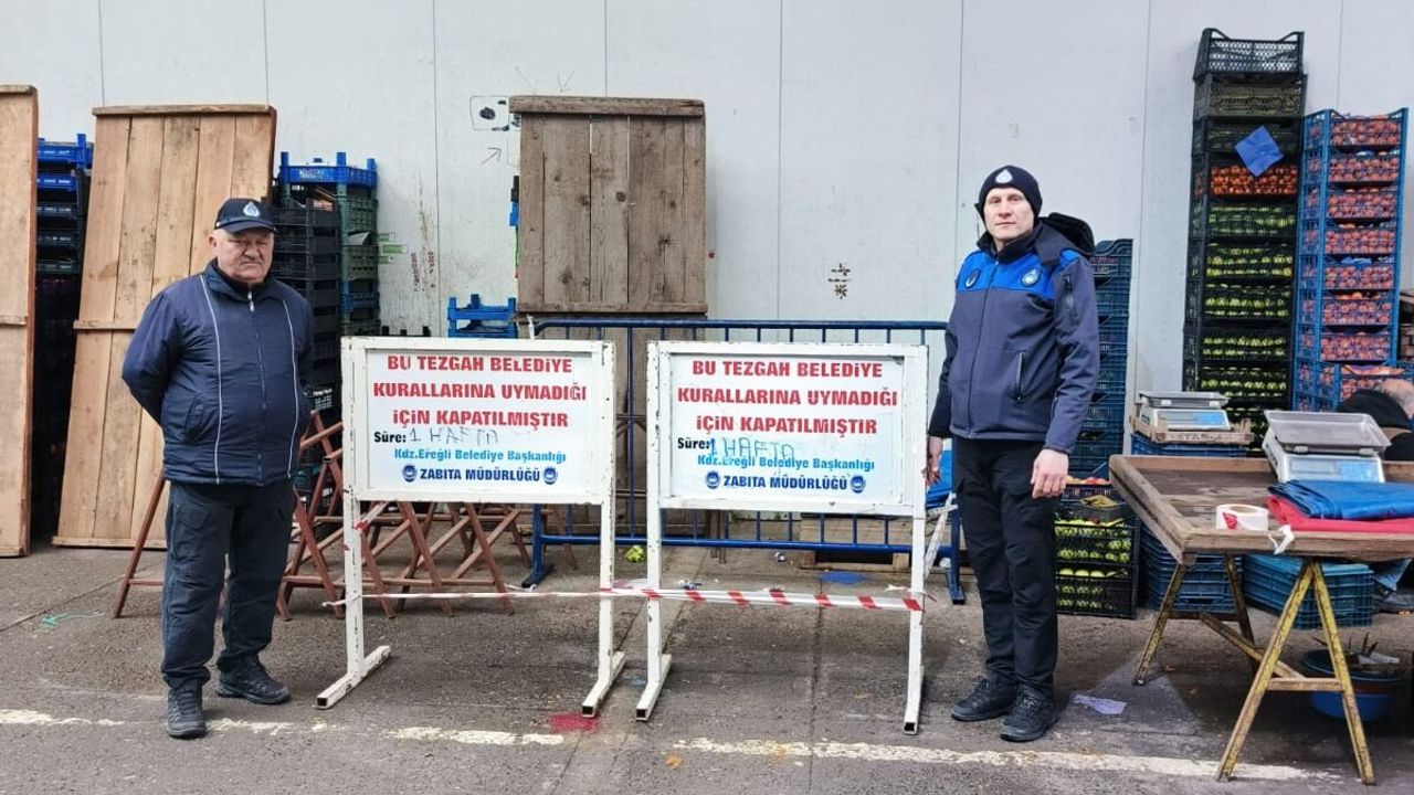 Zonguldak'ın Karadeniz Ereğli ilçesinde, kapalı pazaryerinde müşteriye kaba davranan ve hakaret ettiği belirlenen esnafa, belediye encümeni kararıyla 1 hafta tezgah kapatma cezası uygulandı.