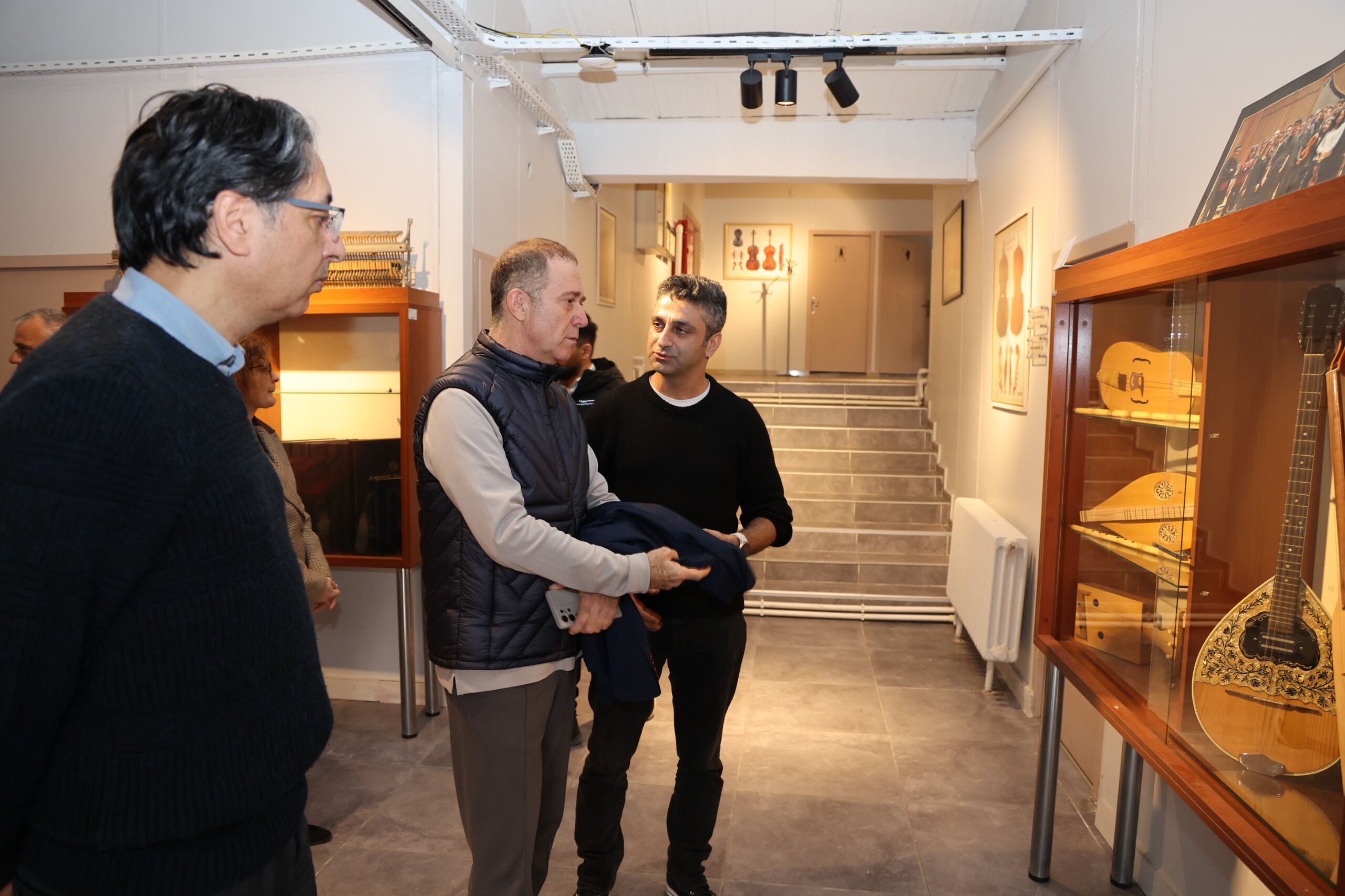 Programın ardından Sümer Ezgü, Zonguldak Bülent Ecevit Üniversitesi Devlet Konservatuvarı bünyesinde faaliyet gösteren ve Türkiye’de yalnızca üç üniversitede bulunan Çalgı Yapım ve Onarım Bölümünü ziyaret etti. Ziyarette Ezgü’ye; Devlet Konservatuvarı Müdürü Prof. Dr. İlker Kömürcü, Kurumsal İletişim Koordinatörü Öğr. Gör. Ufuk Tok ve Müzik Bölümü akademisyenlerinden Öğr. Gör. Cem Dertsiz eşlik etti. Ziyaret kapsamında, Öğr. Gör. Dertsiz tarafından bölümde yürütülen çalışmalar hakkında detaylı bilgiler paylaşılırken; keman ve ney gibi enstrümanların üretim süreçleri, kullanılan malzemeler ve incelikli yapım teknikleri tanıtıldı. Atölyede gerçekleştirilen nitelikli çalışmaların, üniversitenin sanat ve kültür alanındaki akademik gücüne önemli katkılar sunduğu vurgulandı.