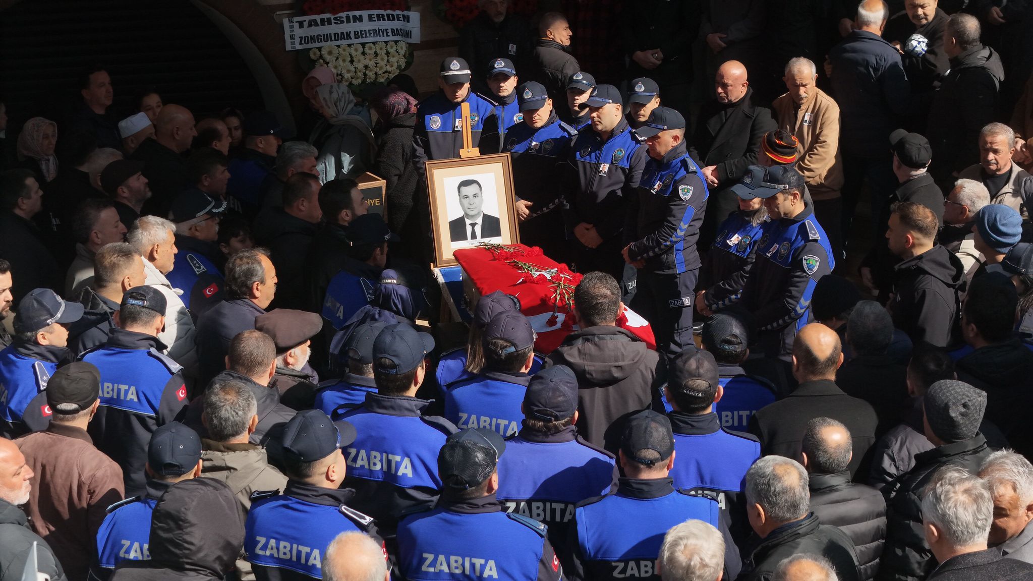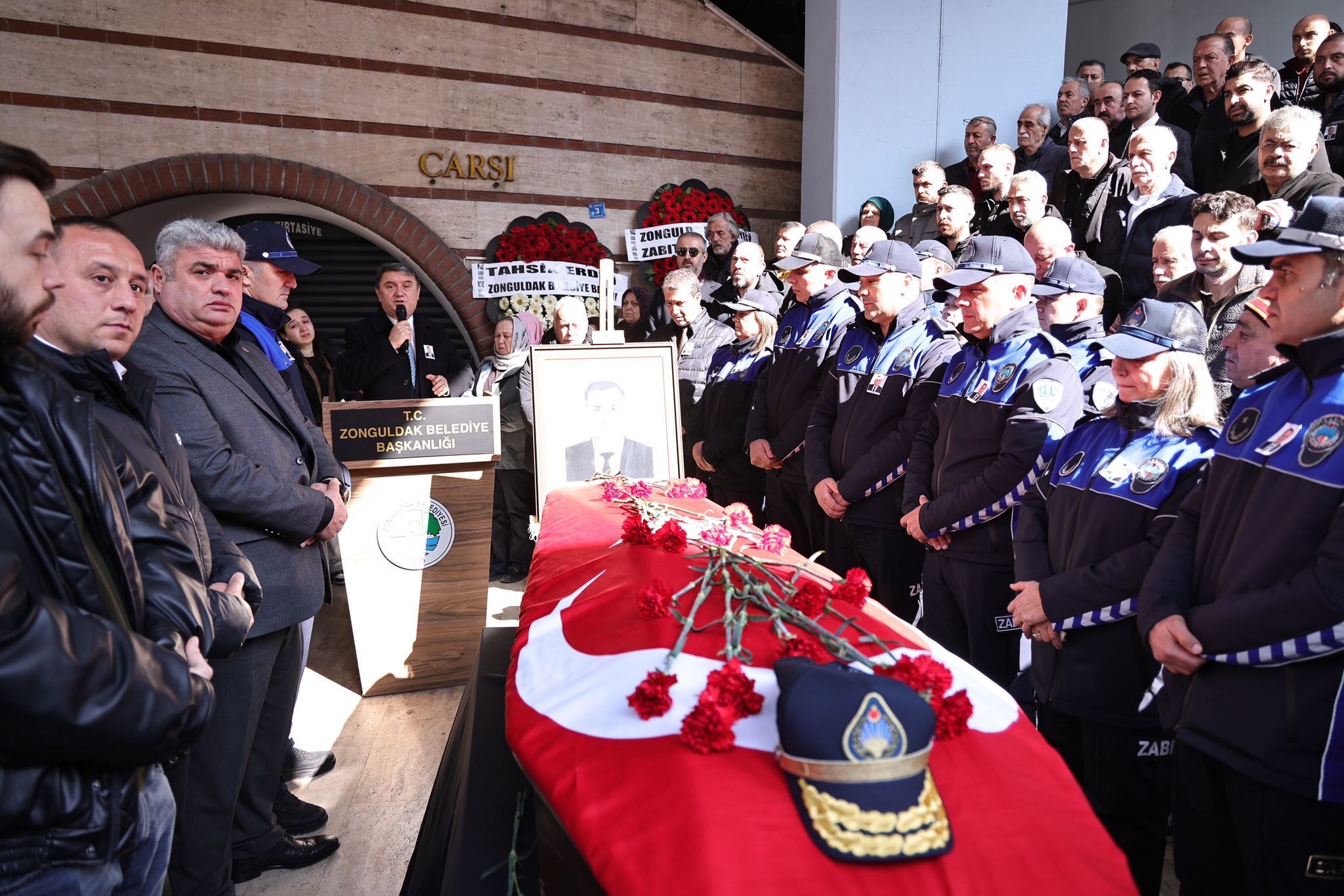 Bir süredir tedavi gördüğü hastanede hayatını kaybeden Zonguldak Belediyesi Zabıta Müdürü Nazmi Çolban için Zonguldak Belediyesi hizmet binası önünde tören düzenlendi.