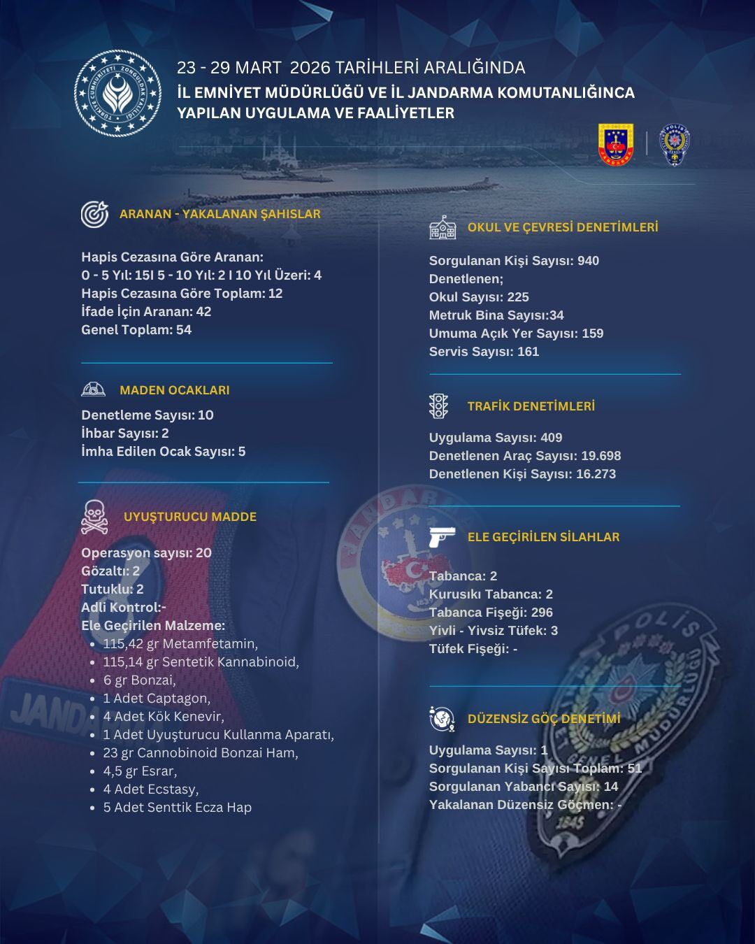 23-29 Mart 2026 tarihleri arasında ekipler tarafından gerçekleştirilen denetimlerde: