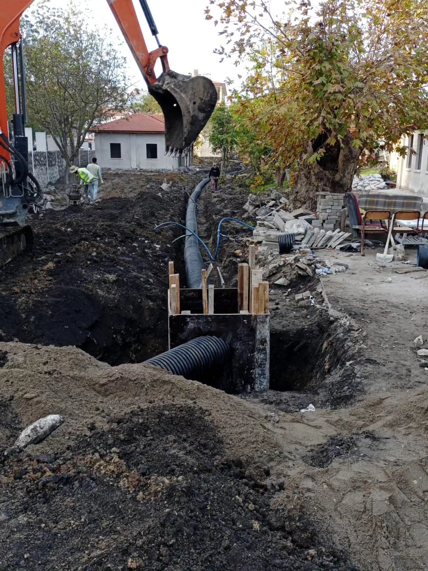 Hisarönü Mahallesi’nde, Atatürk Caddesi ana yol üzerinde biriken yağmur sularının tahliyesi için Demiryolları lojmanları arasından Hisarönü Deresi’ne yağmur suyu hattı yapım çalışmaları sürüyor.