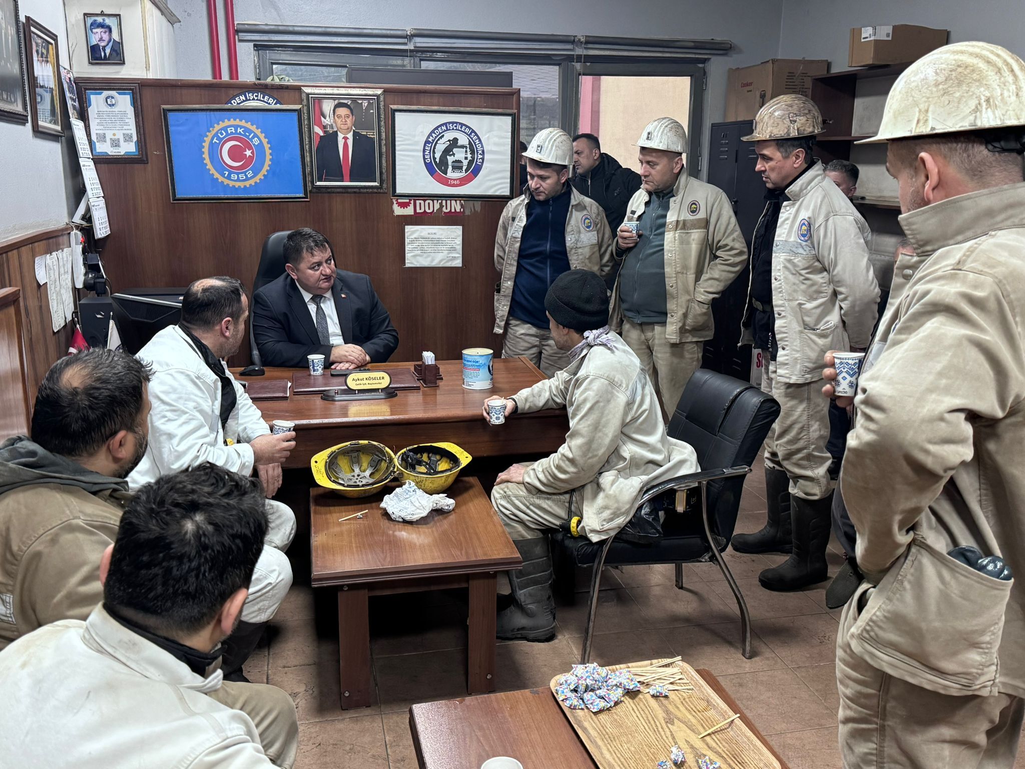 İşletmesinde, Genel Başkan Yardımcısı İsa Mutlu Armutçuk Şube Başkanı Şanver Turan ve şube yöneticileriyle birlikte TTK Armutçuk Müessesesinde, Genel Sekreter Yener Arslanbuğa Kozlu Şube Başkanı Dursun Başbakıcı ve şube yöneticileriyle birlikte TTK Kozlu Müessesesinde, Genel Mali Sekreter Yalçın Yiğit Karadon şube yöneticileriyle birlikte TTK Karadon Müessesesi Kilimli İşletmesinde, Üzülmez Şube Başkanı Sefer Karakabak ve şube yöneticileri TTK Üzülmez Müessesesinde, Amasra Şube Başkanı Ümit Çınar ve şube yöneticileri TTK Amasra Müessese Müdürlüğü’nde, Merkez Servisleri Şube Başkanı Aysel Yaman Kocabaş ve şube yöneticileri, şubelerine bağlı iş yerlerinde çalışan işçilerle bayramlaştı.