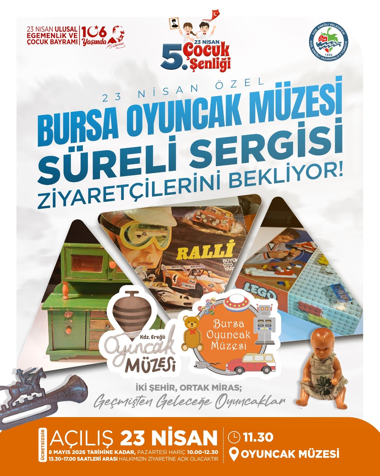 Öte yandan, 23 Nisan’a özel olarak Kdz. Ereğli Oyuncak Müzesi, Bursa Oyuncak Müzesi Süreli Sergisi’ne ev sahipliği yapacak. Sergi, 8 Mayıs 2026 tarihine kadar Pazartesi günleri hariç her gün mesai saatleri içerisinde ziyaret edilebilecek.