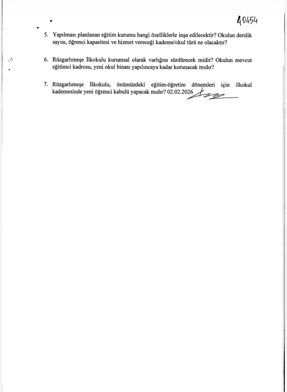 Aynı şekilde Bakanlığın yanıtında mevcut okul binasının tam olarak ne zaman yıkılacağı, yeni okul binasının ne zaman ihale edileceği ve inşaatın hangi tarihte tamamlanacağı konusunda net bir takvim açıklanmamaktadır.