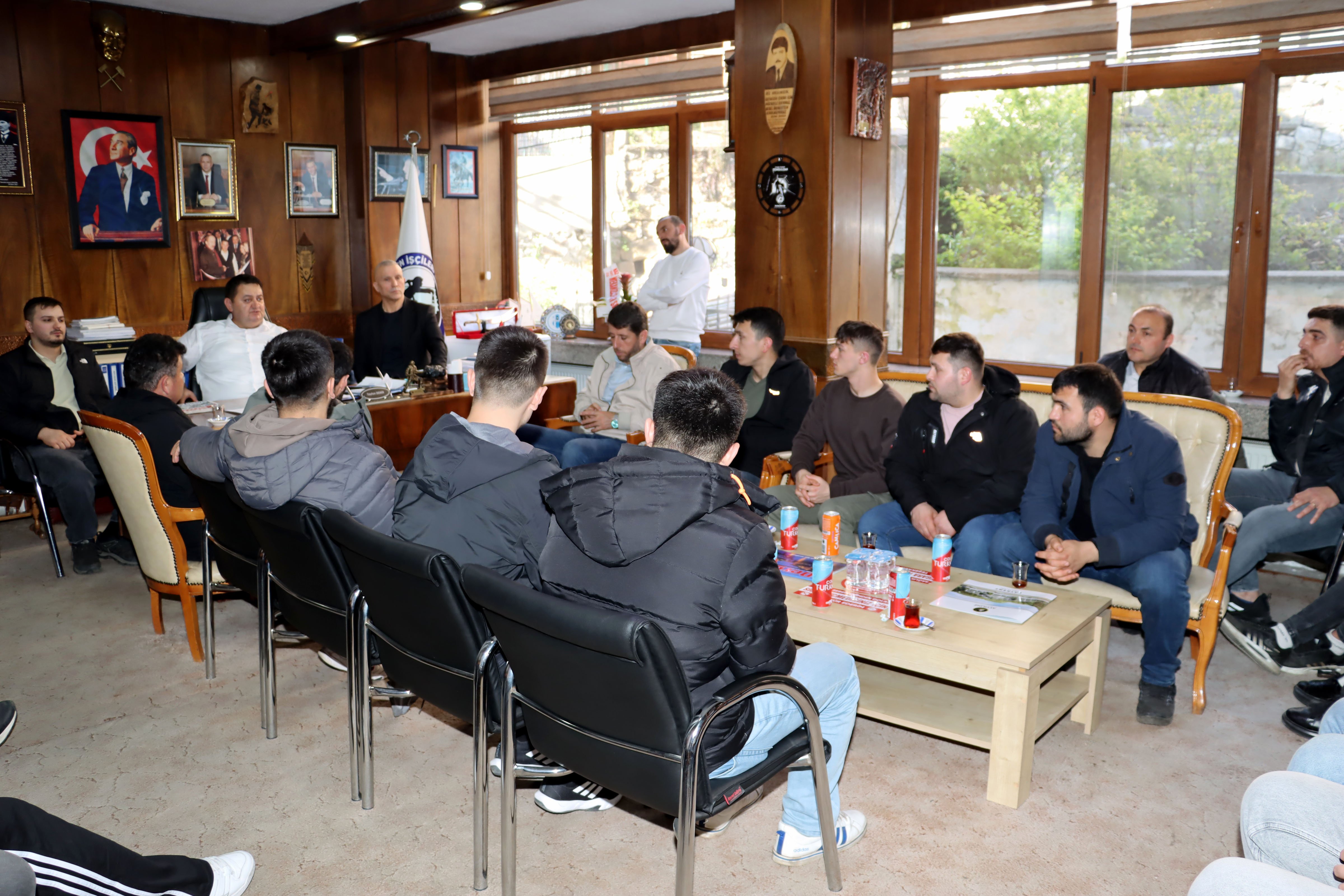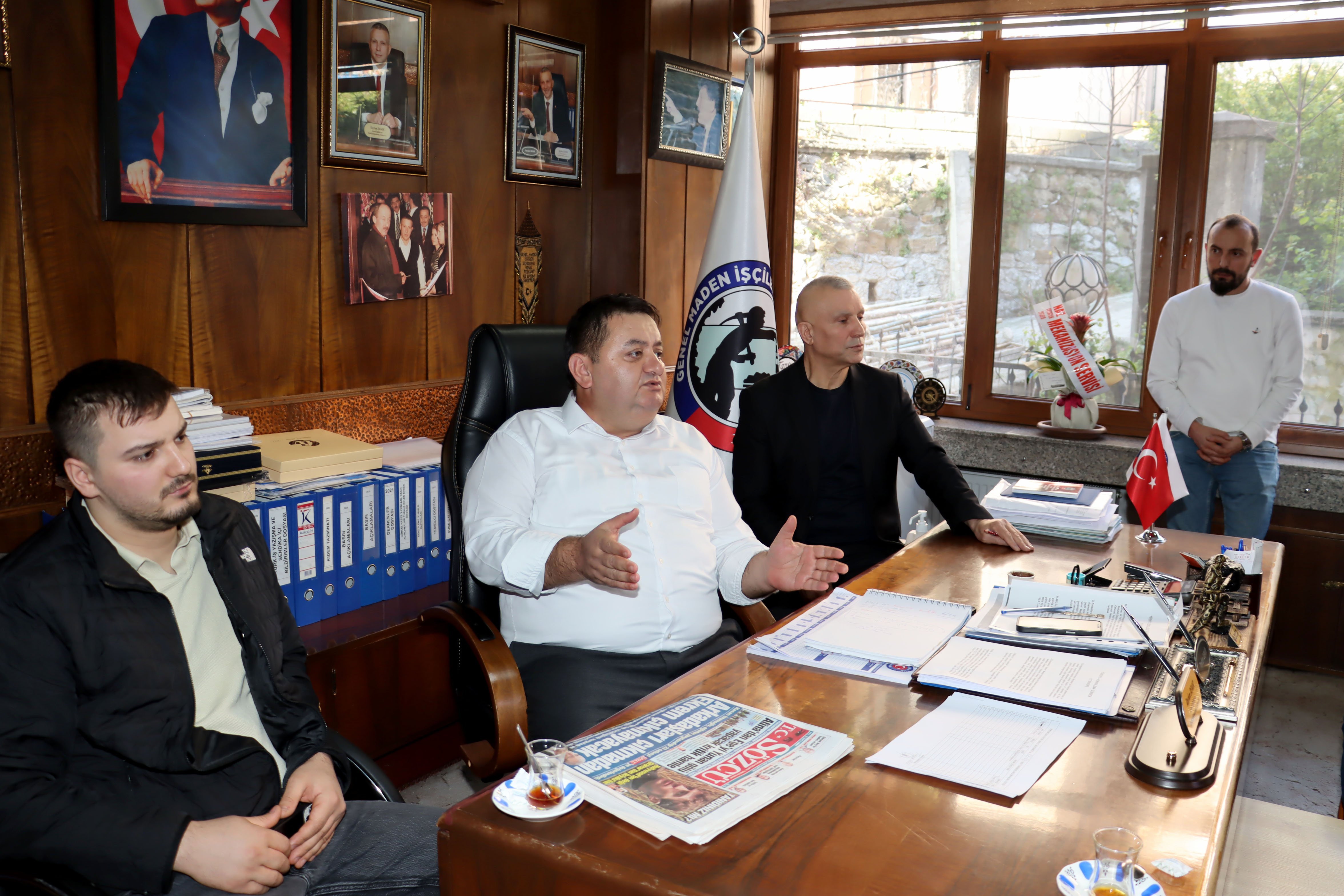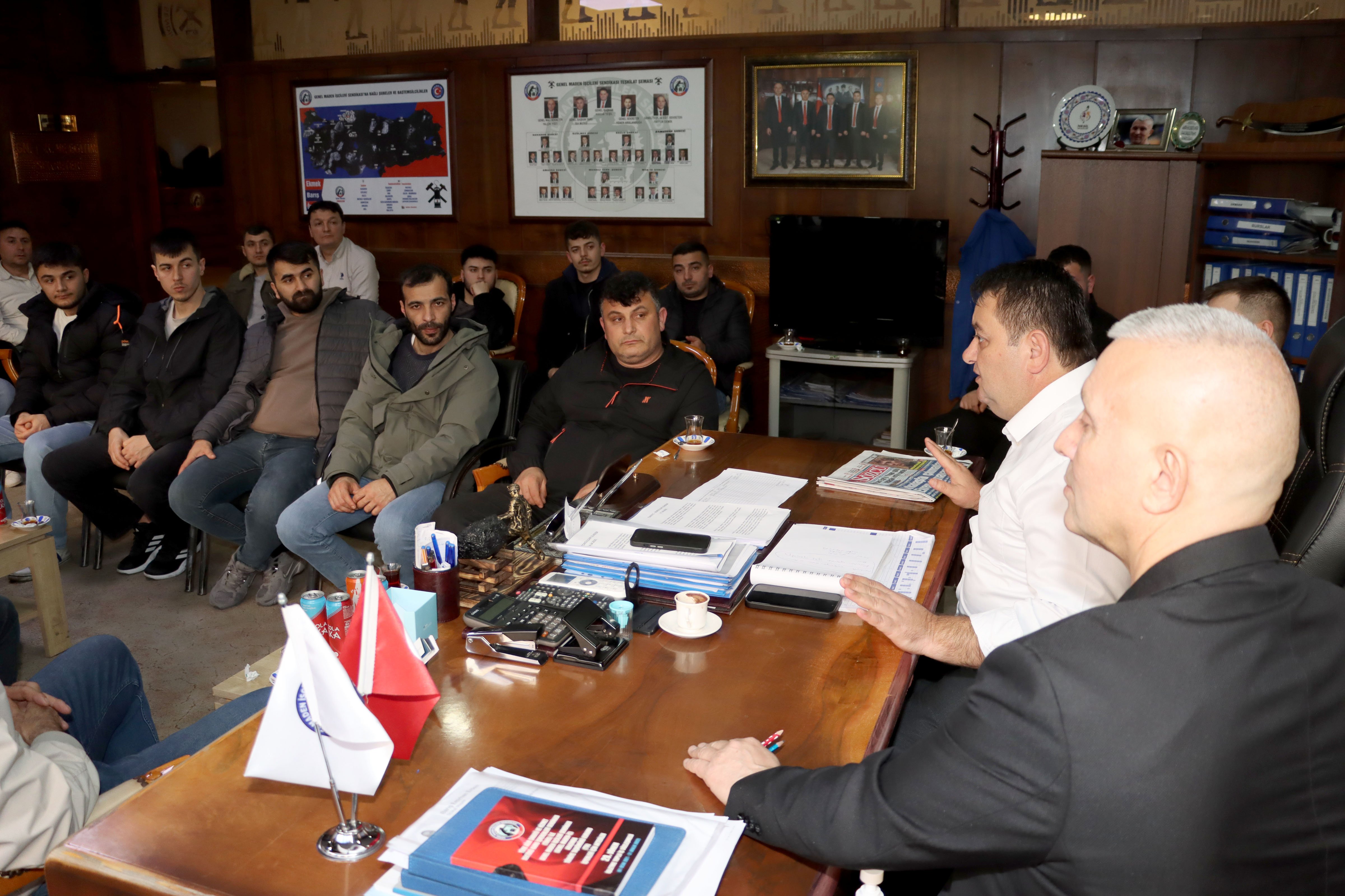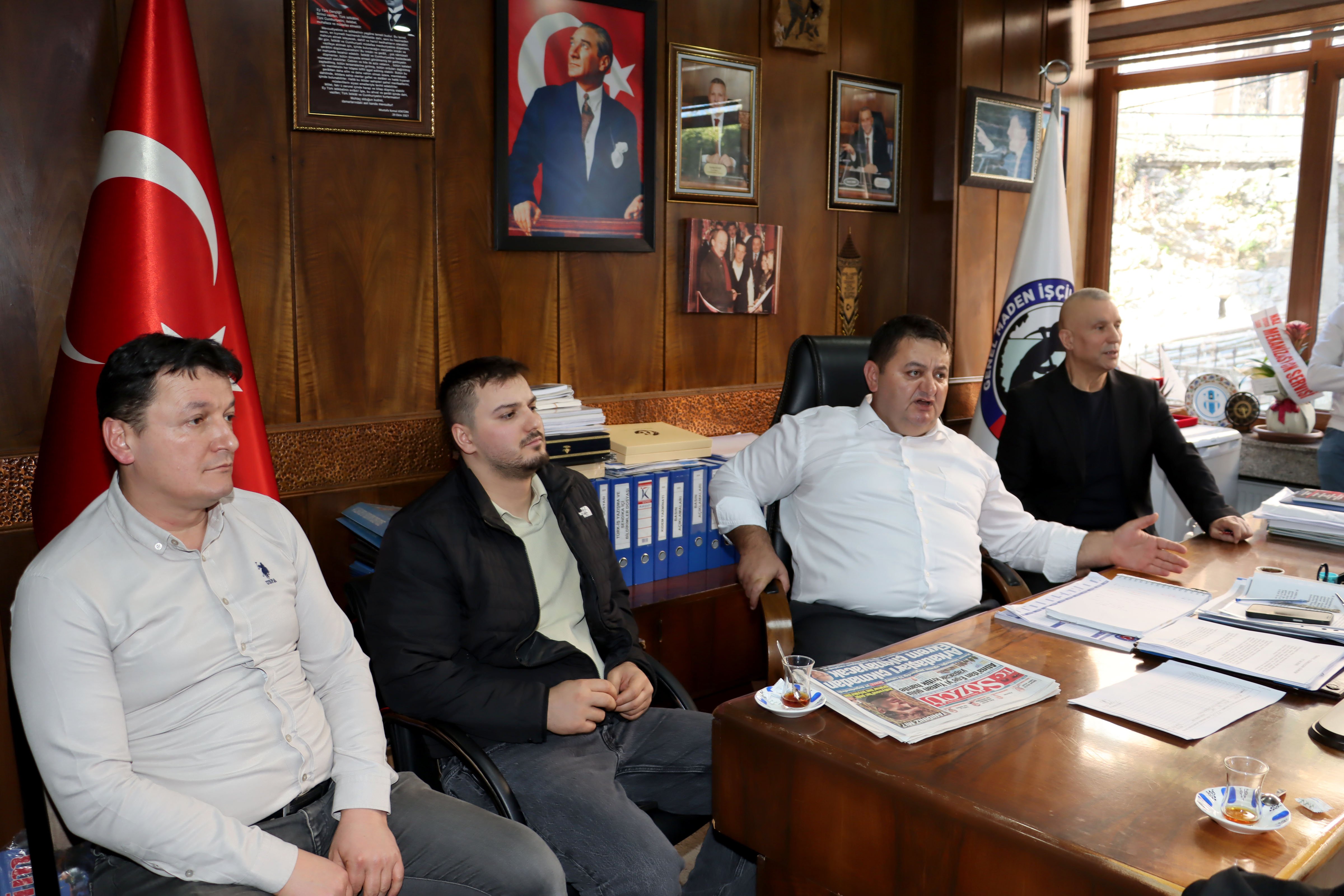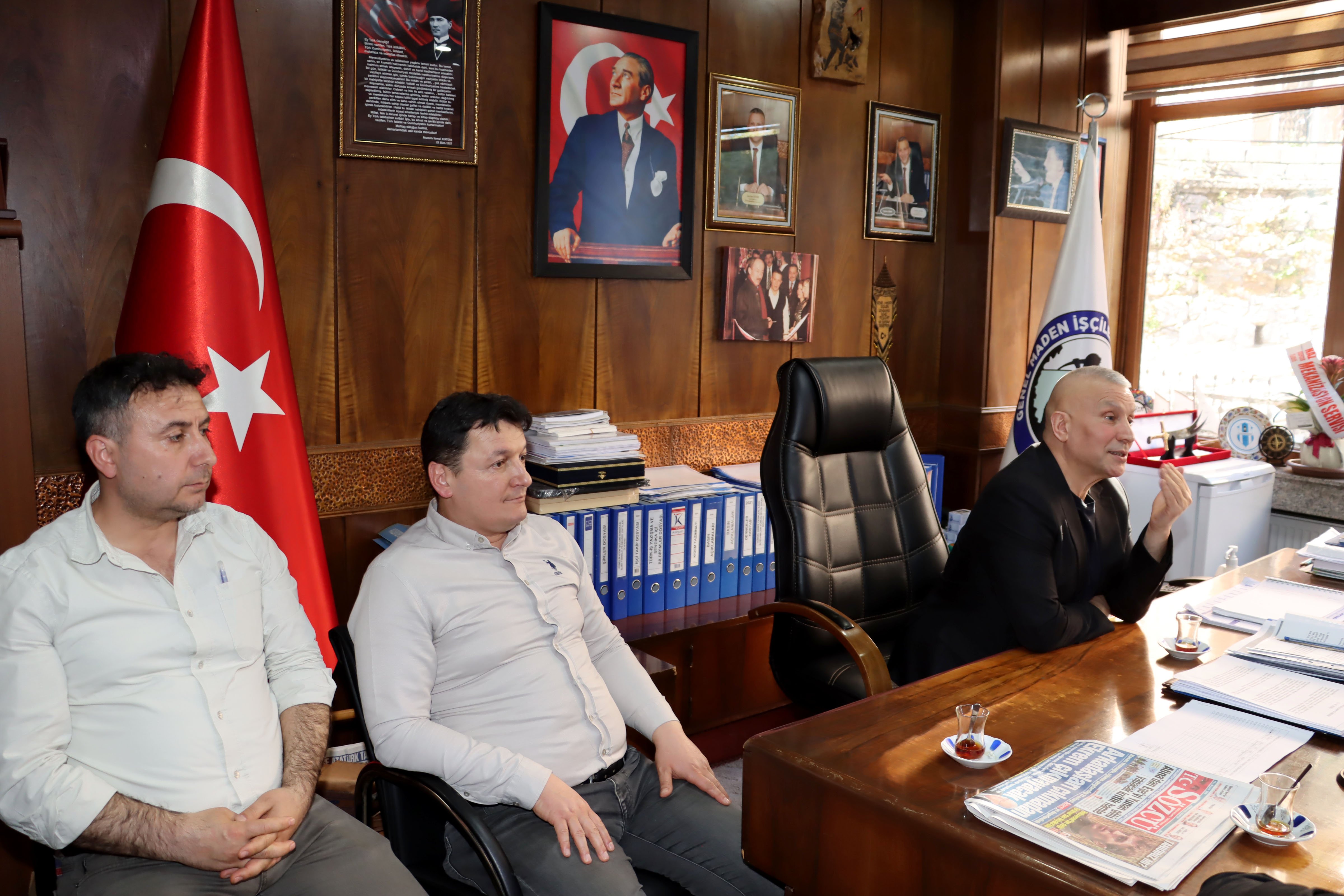 Türkiye Taşkömürü Kurumu (TTK) Üzülmez Müessese Müdürlüğü’nde çalışan maden işçileri, sendikalarını ziyaret ederek Genel Başkan Hakan Yeşil ile Genel Teşkilatlandırma ve Eğitim Sekreteri Tayfun Demir ile görüştü.