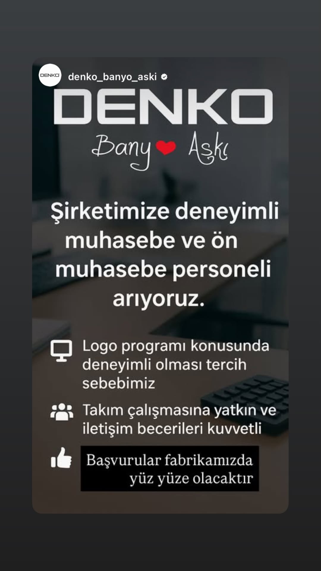 Çaycuma OSB’de faaliyet gösteren, Zonguldak’ın üretim gücünü temsil eden en önemli markalardan biri olan, Türkiye’nin en hızlı büyüyen 100 şirketi arasına girerek ilimizi gururlandıran DENKO Banyo Mobilyaları firması muhasebe ve ön muhasebe personeli alımı yapacak.